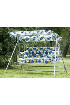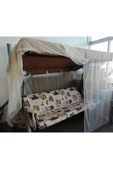 Габаритные размеры изделия (длина х ширина х высота), мм: 2310х1260х1478. Максимальная нагрузка, кг: 210. Каркас: труба стальная Ø45х1,4; 28х1,5; полимерное покрытие. Основание сиденья - сетка металлическая, полка - 2 шт. Мягкий элемент: ткань 45% п/э – 55% хлопок, плотность 108-111г/м2, наполнитель мягкого элемента - листовой поролон 50мм. Подушки – 2шт. Тент с сеткой проивомоскитной: ткань тента с водоотталкивающей отделкой 100% п/э. Регулировка спинки: звеньями цепи на требуемый угол наклона. Прочные садовые качели на 250 кг с регулируемым навесом, удобным мягким сиденьем и стальной рамой, для отдыха семьей на свежем воздухе.