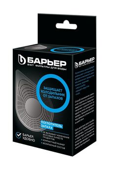 Компактный помощник для кухни. Поглотитель запаха БАРЬЕР идеально подходит для бытовых холодильников любого объёма. Абсолютно безопасный природный состав. На 100% состоит из активированного угля. Натуральный сорбент способен полностью поглощать неприятные запахи, не выделяя собственных. Уменьшает интенсивность запахов различных продуктов питания, например мяса и рыбы, овощей и фруктов, сыра. Не содержит вредных химических веществ, не имеет запаха. Безопасен для окружающей среды. Быстро устраняет неприятные запахи в холодильнике, безопасен для продуктов, действует до 3 месяцев, компактен и прост в использовании.