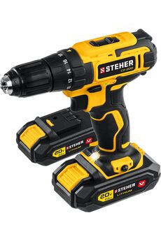 Новый недорогой шуруповерт Steher - помощник в сверлении и заворачивании. Индивидуальный дизайн, удобная эргономика, высокие скорость и крутящий момент обеспечивают комфортную и производительную работу. ″Мягкая″ муфта с минимальным крутящим моментом 0.2 Нм позволяет работать с компьютерными винтиками или мебельной отделкой Аккумуляторная дрель-шуруповерт: 20 В, 2 аккумулятора по 2 Ач, 45 Нм, быстрозажимной патрон, LED-подсветка, кейс для удобства и автономной работы.