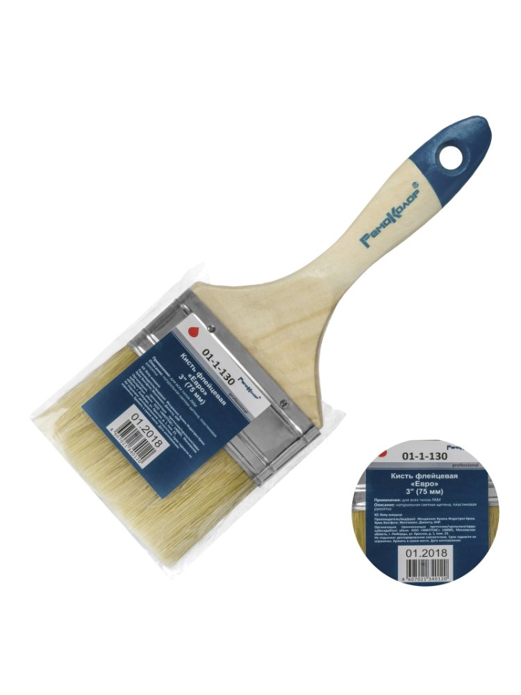Кисть плоская РемоКолор Евро натур.светлая щетина 76мм в Лесозаводск