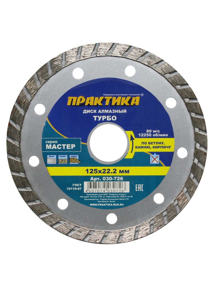 Идеальный выбор для профессионального и бытового реза — данный алмазный турбированный диск с диаметром 125 мм гарантирует чистый, быстрый и точный пропил по керамической плитке, керамограниту, натуральному и искусственному камню, а также бетону. Оптимален для использования с болгарками и подходит как для сухой, так и влажной резки.