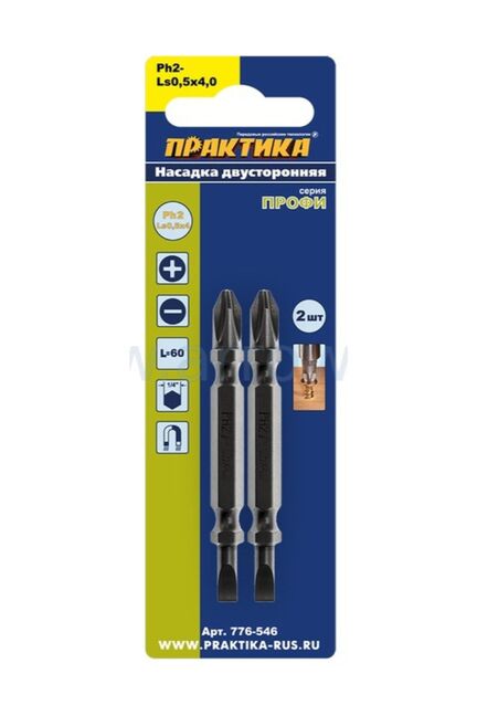 Бита ПРАКТИКА PH2/SL0,5*4 65 мм, двусторонняя, 2шт в Лесозаводск