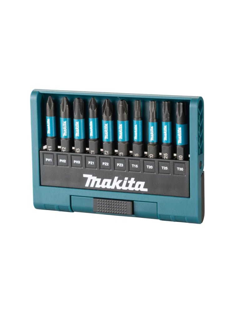 - В комплекте 10 универсальных бит для самых распространённых видов крепежа.