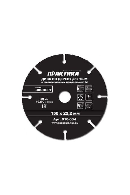 Диск по дереву с твердосплавным зерном ПРАКТИКА 150х22 мм для УШМ