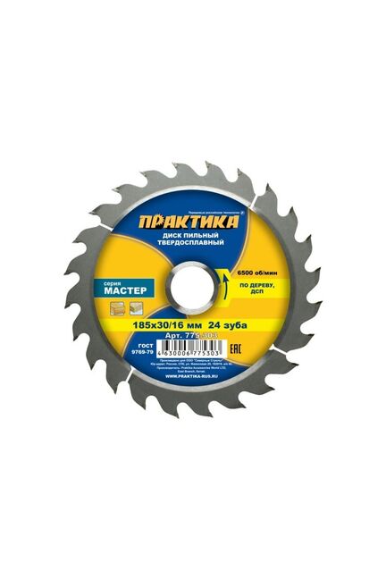 Диск пильный твёрдосплав. по дереву ДСП ПРАКТИКА 185х30\20\16 мм, 24 зубов в Лесозаводск