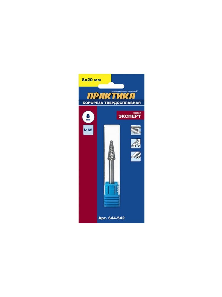 Максимальная точность и ресурс — для профессионалов! Борфреза твердосплавная коническая с закруглением диаметром 8 мм, длиной рабочей части 20 мм и хвостовиком 6 мм (тип L, артикул 644-542) предназначена для обработки твёрдых сплавов, сталей, цветных и чёрных металлов, а также пластика и древесины. Идеальный выбор для зачистки, шлифования, снятия заусенцев и финишной обработки сварных швов.