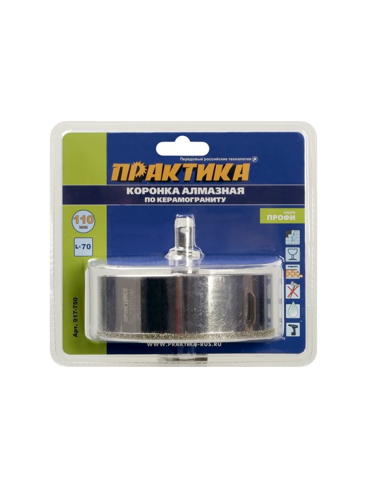 Добейтесь идеальной точности и чистоты при сверлении керамогранита и керамики с профессиональной алмазной коронкой 110×70 мм. Инструмент незаменим для создания технологических отверстий под розетки, коммуникации и сантехническое оборудование в плитке и керамограните высокой прочности.