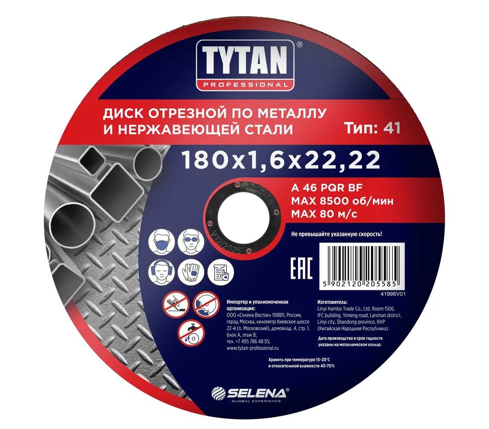 Диск отрезной по металлу и нержавеющей стали Professional Tytan Плоский отрезной абразивный диск по металлу и нержавеющей стали на основе электрокорундовых абразивных материалов с упрочняющими элементами на бакелитовой связке со среднем размером зерна. Используется для резки металлических труб, деталей и заготовок, строительной арматуры и других материалов как сменный элемент для угловых шлифовальных машин (УШМ).