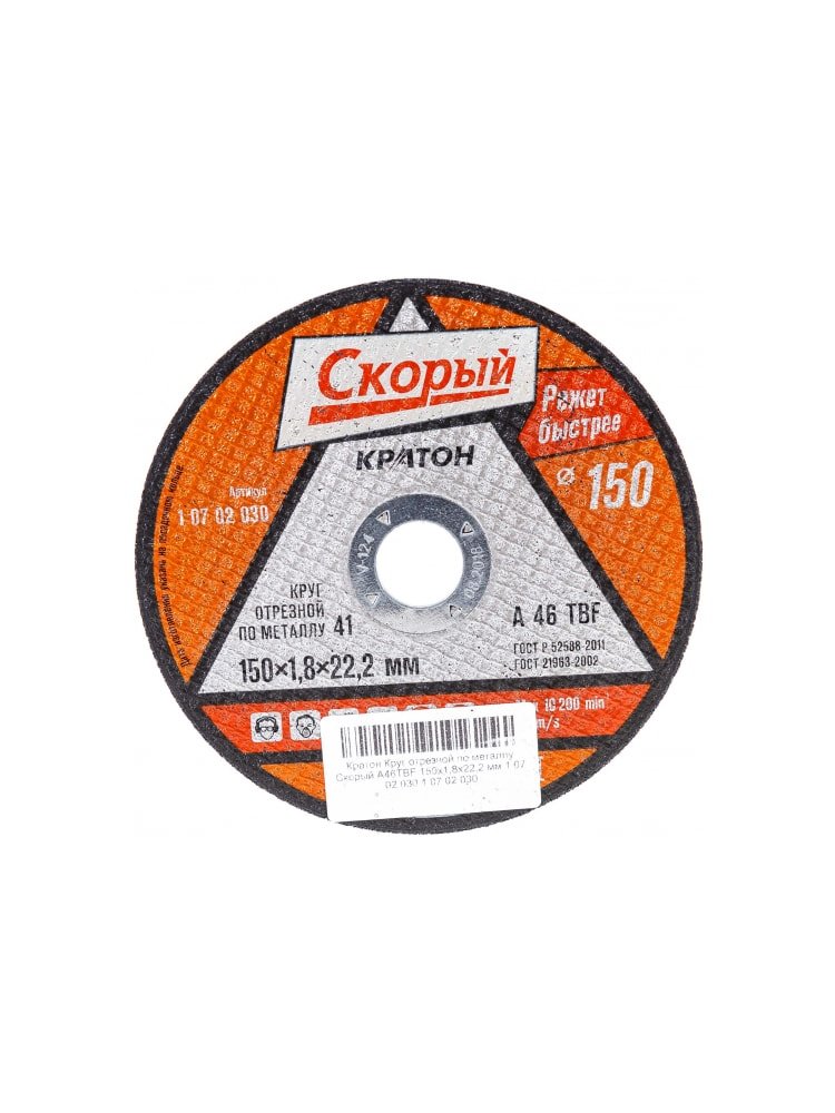 Круг отрезной по металлу КРАТОН "Скорый" 150*1,8*22,2 мм