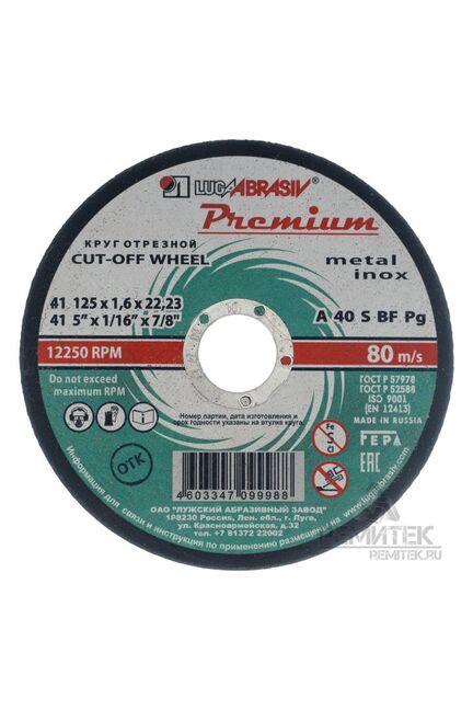 Круг отрезной по металлу и нерж. ЛУГА Premium 125*1,6*22мм в Лесозаводск