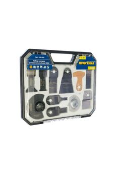 Набор насадок №8 ПРАКТИКА используется совместно с многофункциональным инструментом. Применяется при обработке дерева, ДСП, фанеры, пластика, листов ГКЛ, стали, цветных металлов, плитки, камня. Набор включает двенадцать насадок, позволяющих производить различные виды работ: выборка пазов, подрезание внутренних углов, вырезание проемов, резка плинтусов, пластиковых труб и т. д. 15 универсальных насадок в кейсе для МФИ: резка, шлифовка, зачистка дерева, металла, пластика, керамики. Надёжно, удобно, практично.