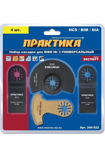 Наборы насадок для МФИ. Серии "Профи" и "Эксперт". Набор из 4 универсальных насадок для МФИ: дерево, металл, пластик. Для точной резки, зачистки и снятия покрытий. Удобная и долговечная комплектация.