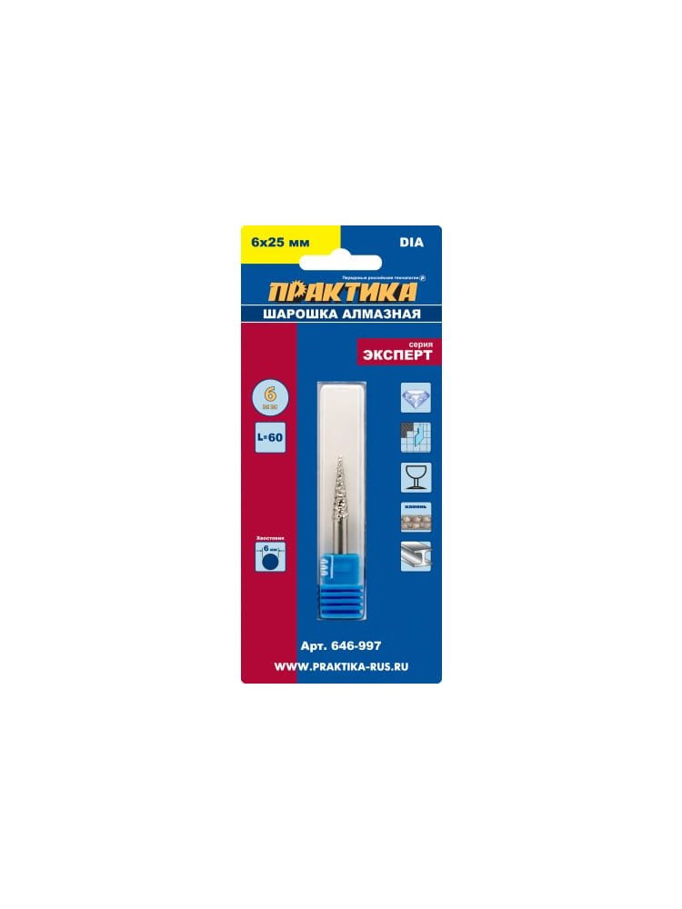 Идеальный выбор для точных работ по шлифовке, зачистке и формовке твёрдых материалов — алмазная шарошка конической удлинённой формы с диаметром 6 мм и рабочей длиной 25 мм. Незаменима в обработке керамики, камня, стекла, фарфора и твёрдых сплавов при ремонте, строительстве и отделке помещений.