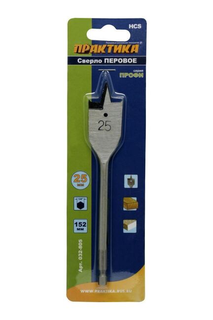 Сверло по дереву ПРАКТИКА перовое 25*152мм в Лесозаводск