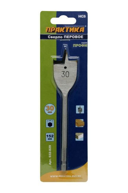 Сверло по дереву ПРАКТИКА перовое 30*152мм