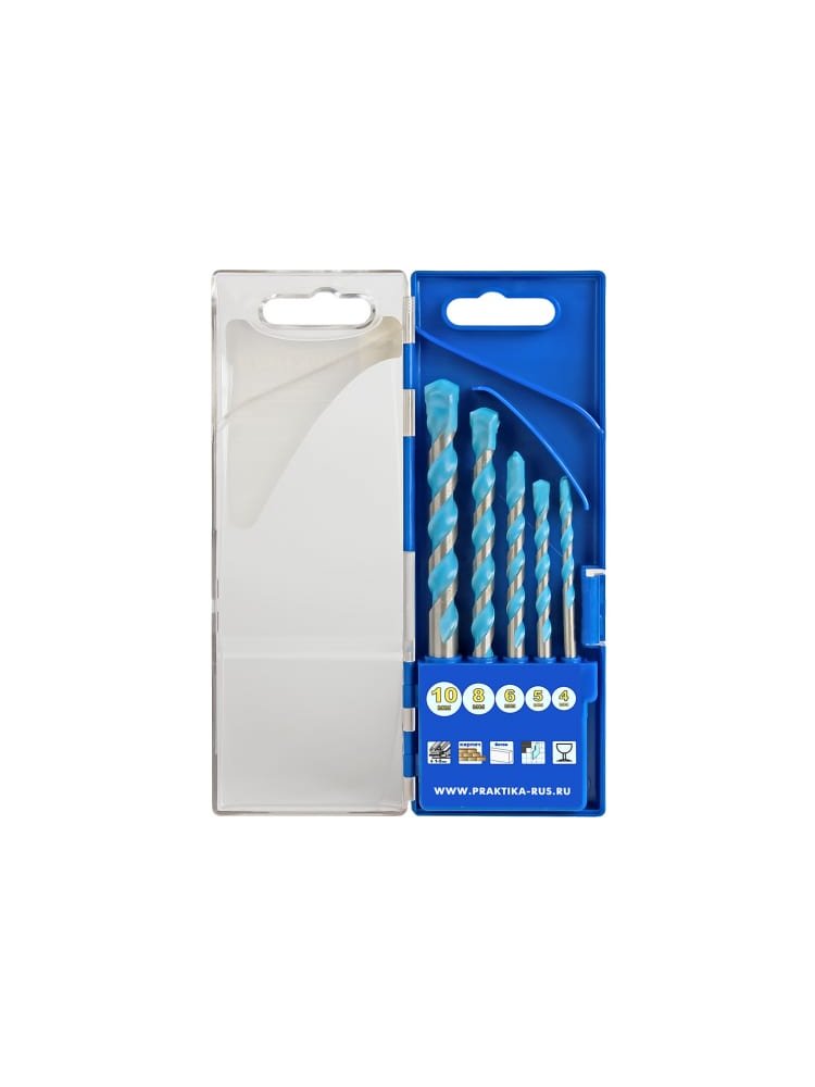 - В набор входит 5 сверл: Ø4, 5, 6, 8, 10 мм — самые востребованные размеры для разнообразных задач.