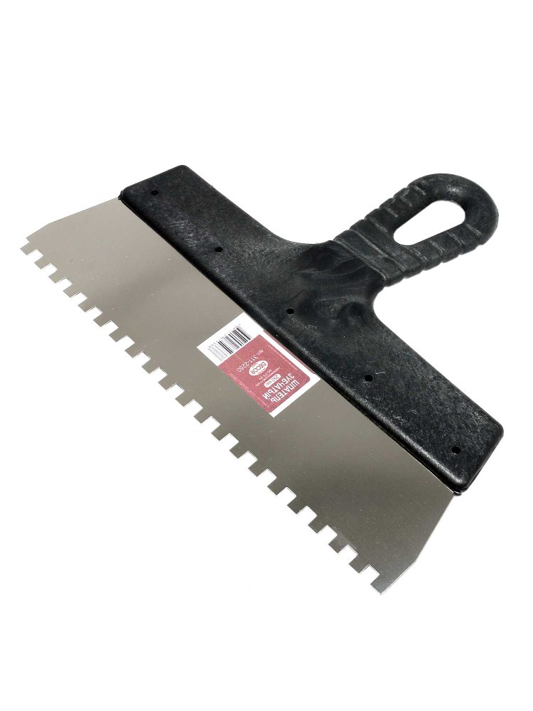 Идеальный инструмент для профессиональной и быстрой укладки плитки или нанесения клеевых составов. Оптимальный размер и специальная зубчатая форма позволяют равномерно распределять клей, обеспечивая надежное сцепление и минимальный расход материалов.