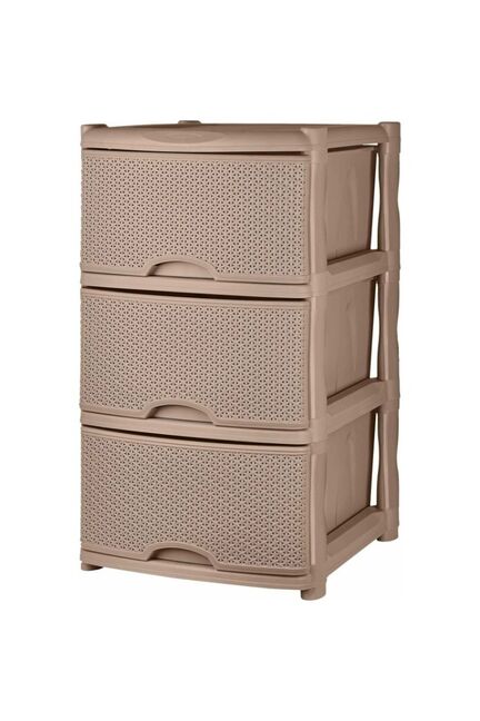 Стильный и практичный трехсекционный комод отлично подойдет для хранения инструментов, стройматериалов, бытовых принадлежностей и аксессуаров как в мастерских, гаражах, так и в жилых помещениях. Благодаря имитации плетения ротанг и трендовому цвету морской песок комод гармонично впишется в современный интерьер или рабочее пространство.