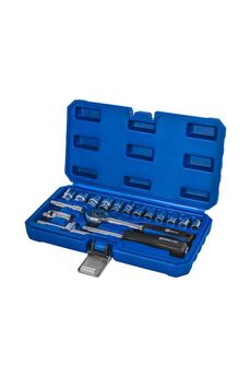 25 предметов: трещотка, головки 1/2" Cr-V, кейс. Прочность, широкий спектр применения, компактное хранение, для авто и дома.
