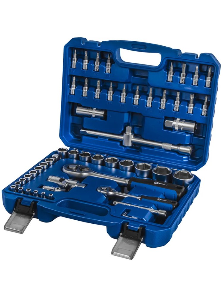 Профессиональный инструмент под рукой в любых условиях — идеальный набор для автосервиса, мастерской и домашнего ремонта. Универсальный комплект из 54 предметов поможет быстро и удобно работать с резьбовыми соединениями различного типа.