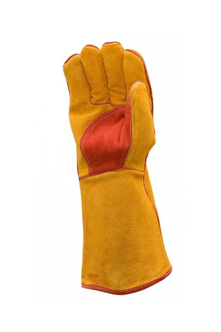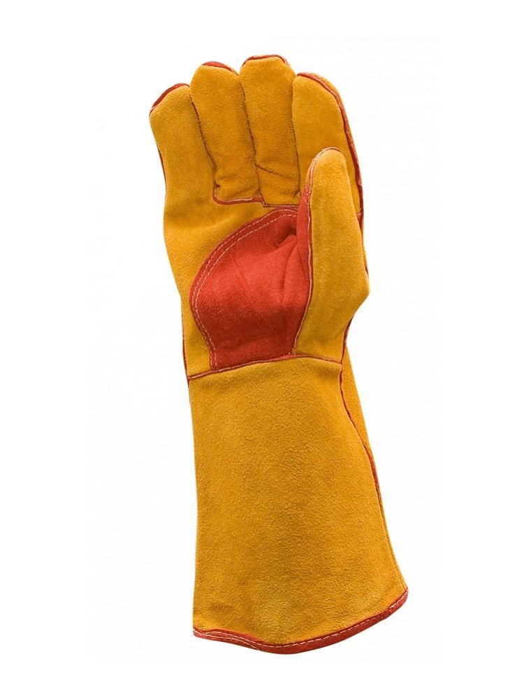 Краги спилковые пятипалые усиленные (желтый/красный) (КРА467/КРА463) в Лесозаводск