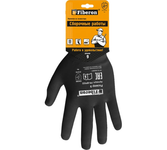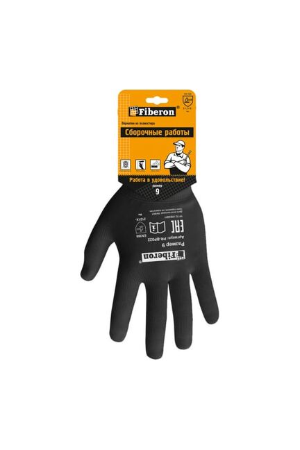 Перчатки полиэстер. "Для сборочных работ", черные, Fiberon в Лесозаводск