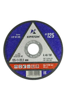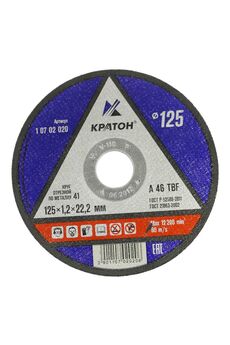 Круг отрезной по металлу КРАТОН оптимально подойдет для резки металлоконструкций а так же тонкого листового металла. Отрезной круг 125×3,0×22,2 мм для чистого и быстрого реза металла, долгий срок службы, подходит для болгарок и УШМ, устойчива к перегреву.