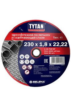 Диск отрезной по металлу и нержавеющей стали Professional Tytan Плоский отрезной абразивный диск по металлу и нержавеющей стали на основе электрокорундовых абразивных материалов с упрочняющими элементами на бакелитовой связке со среднем размером зерна. Используется для резки металлических труб, деталей и заготовок, строительной арматуры и других материалов как сменный элемент для угловых шлифовальных машин (УШМ). Для чистого и точного реза металла и нержавейки, толщина 1,6 мм, повышенная износостойкость, подходит для всех стандартных болгарок.