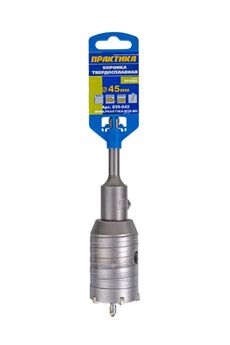 Твердосплавные коронки и держатели коронок для перфораторов SDS- plus и SDS- max. Серии "Мастер" и "Профи". Для быстрого ударного сверления в кирпиче и неармированном бетоне глухих отверстий под монтажные коробки перфораторами с патронами SDS-plus и SDS-max. При необходимости возможно сверление сквозных отверстий под сантехнические и вентиляционные трубы, периодически вынимая керн. В случае сверления в армированном бетоне используйте алмазную коронку в неударном режиме. Унифицированная резьба позволяет установить любой хвостовик на любую коронку в зависимости от имеющегося перфоратора и глубины отверстия, которое необходимо просверлить. Прочная твердосплавная коронка SDS-Plus 45 мм для перфораторов — точное и быстрое сверление бетона, камня, кирпича. Высокий ресурс, надёжность.