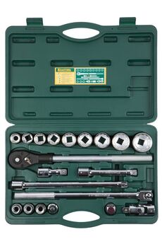 Профессиональный инструмент. Обладает высоким ресурсом даже при интенсивных работах. Применяется для работ с крепежом. 3/4" Профессиональный набор головок 20 пр. для грузовой и строительной техники, износостойкая сталь, размеры 10-50 мм, прочный кейс.