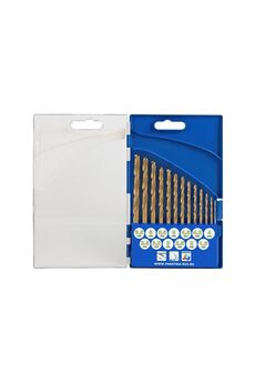 Min диаметр - 1.5 мм, количество предметов - 13 шт, Мах диаметр хвостовика - 13 мм, Мах диаметр сверла - 6.5 мм, тип - спиральный, материал обработки - металл, тип хвостовика - цилиндрический, материал сверла - HSS Надежный набор сверл по металлу с титановым покрытием: 13 размеров от 1,5 до 6,5 мм, повышенная износостойкость, монтаж без перегрева.