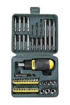 Набор KRAFTOOL предназначен для сверления, закручивания и выкручивания винтов, болтов и других видов крепежного элемента. В состав набора входят 43 предмета: 7 торцевых головок, 19 бит по 25 мм., 8 бит по 50 мм., 3 биты по 100 мм., 3 сверла, адаптер для головок, магнитный удлинитель для бит и реверсивная отвертка. Многофункциональность, 43 предмета, реверсивная отвертка, биты, головки, сверла, надёжный кейс и долговечные материалы для любых задач.