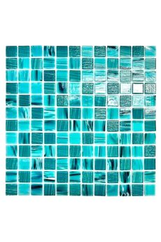 Тип поверхности: Глянцевая Стеклянная влагостойкая мозаика, размер листа 295×295 мм, чип 25×25 мм, подходит для ванных, бассейнов и кухонь, устойчива к химии и выцветанию.
