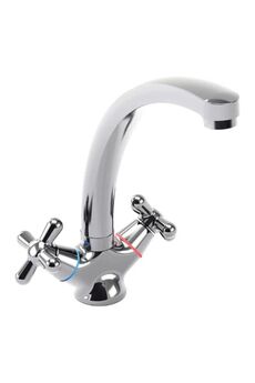 Двуручный смеситель с поворотным изливом, стойкий к коррозии, надёжный, удобен в обслуживании, идеально подходит для кухонных раковин.