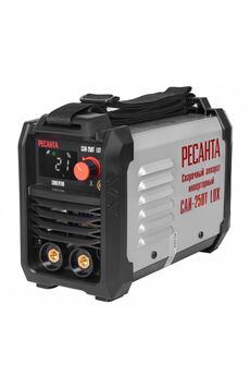 Сварочный аппарат Ресанта 250 – инверторный источник питания постоянного тока, разработанный для ручной электродуговой сварки, методом ММА, плавящимся покрытым электродом. Прибор адаптирован под эксплуатирование в сетях с перепадами в диапазоне от 140 до 260В. Этого вполне достаточно, чтобы обеспечить стабильную работу инвертора Ресанта САИ 250, в любом режиме нагрузки. В приборе реализован широкий выбор рабочего тока – от 10 до 250 Ампер. Именно в этом заключается превосходство данной модели, что делает его более эффективным и универсальным. В зависимости от типа операций и вида деталей, выбирается электрод, с максимальным диаметром 6 мм. Это даёт возможность не только варить стальные металлоконструкции, но и выполнять строжку (резку толстых заготовок). Сварочный инвертор 250 А, регулировка тока 10–250 А, стабильная работа при низком напряжении, поддержка электродов 1,6–5 мм, защита от перегрева.