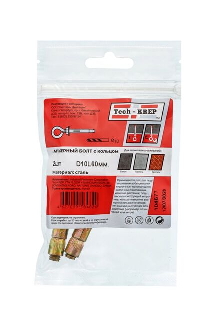 Анкерный болт с кольцом 10х60 (2 шт) - пакет Tech-Krep в Лесозаводск