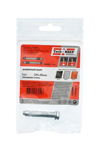 Анкерный болт 8х45 мм от Tech-Krep представляет собой надежный крепежный элемент, изготовленный из высокопрочной углеродистой стали с антикоррозийным цинковым покрытием. Предназначен для создания прочных соединений в бетоне, кирпиче и других твердых строительных материалах. Конструкция болта включает распорную втулку, которая обеспечивает равномерное распределение нагрузки, гарантируя устойчивость крепления даже при значительных нагрузках. Упаковка содержит 1 штуку, что удобно для точечного применения в небольших проектах. Простота монтажа позволяет использовать крепеж как профессионалам, так и новичкам в строительстве.