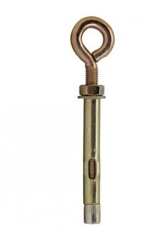 Анкерный болт с кольцом для крепления тяжелых подвесных конструкций к плотным строительным материалам. Для надёжной фиксации в бетоне и кирпиче, нагрузка до 350 кг, оцинкованная сталь, удобное крепление тросов и цепей, монтаж без усилий.
