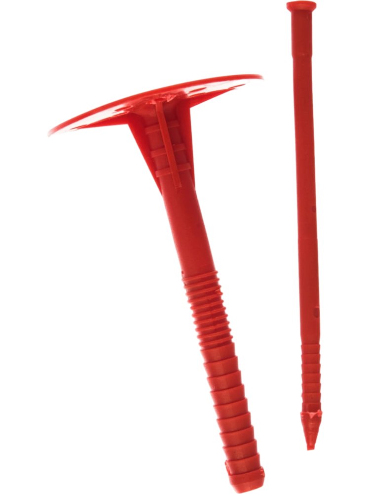 - Широкая шляпка дюбеля предотвращает повреждение изоляционного материала.