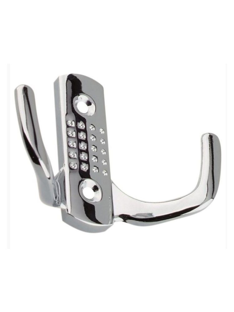 Стильный и надежный двухрожковый крючок идеально подходит для организации пространства в прихожих, ванных, гардеробных и кухонных зонах. Изготовлен из высококачественного сплава с хромированным покрытием, он устойчив к коррозии и износу, а лаконичный дизайн гармонирует с любым интерьером.
