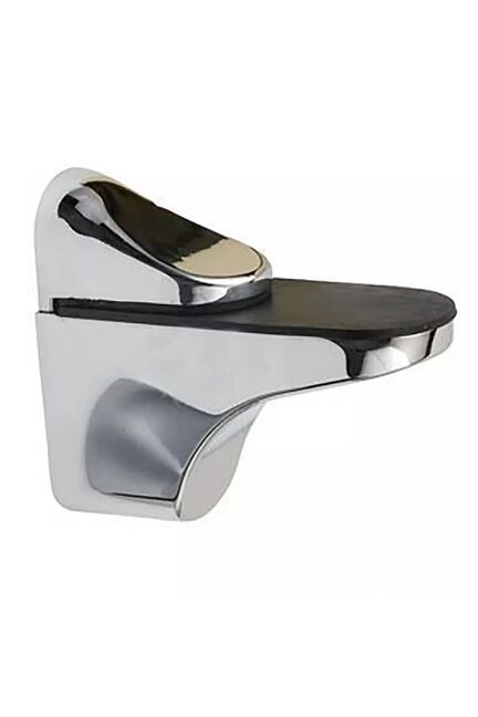 Прочный держатель для стеклянных и деревянных полок толщиной 5–22 мм, выдерживает до 20 кг, устойчив к коррозии, стильный матовый хром.