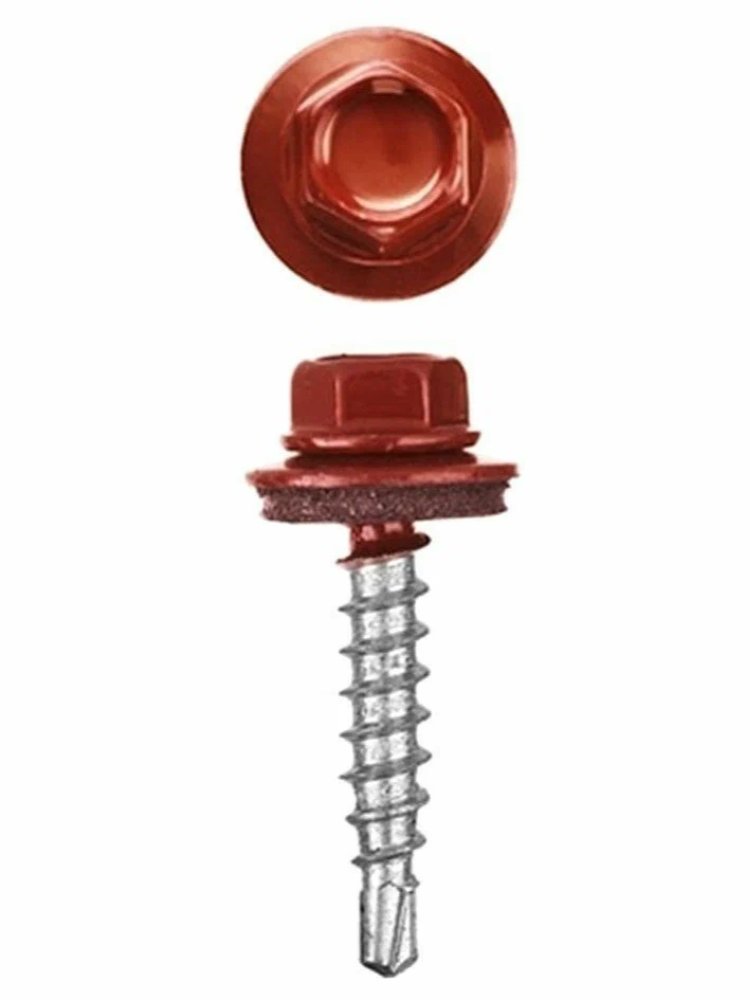 Идеальный выбор для надежной фиксации кровельных и фасадных элементов! Саморез с шестигранной головкой и уплотнительной шайбой EPDM обеспечивает быструю и прочную установку на металл от 0,8 до 2 мм, предотвращает протечки и устойчив к коррозии. Красное покрытие гарантирует эстетичный внешний вид и точное совпадение с цветом кровли.