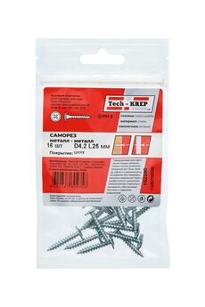 Саморезы с прессшайбой 4,2х25 мм для надежного крепления дерева, пластика и металла. Острые, прочные, с антикоррозийным покрытием. 16 шт.