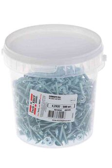 Прочные саморезы 4,2х32 мм с прессшайбой, закалённая сталь, 500 шт. в ведре — идеальны для работы с металлом, деревом и гипсокартоном.