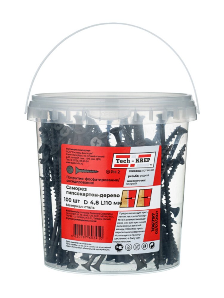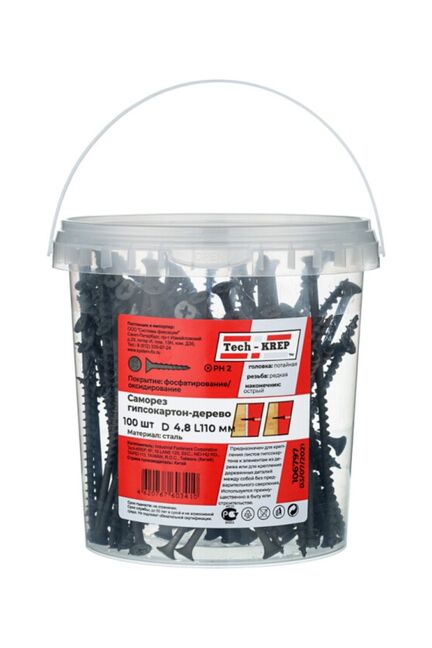 Саморез по дереву 4,8х110 (100 шт) - ведро Tech-Krep в Лесозаводск