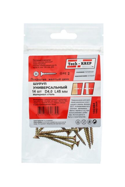 Саморез универс. желтый 4,0х45 пот. гол. (14 шт) - пакет Tech-Krep в Лесозаводск