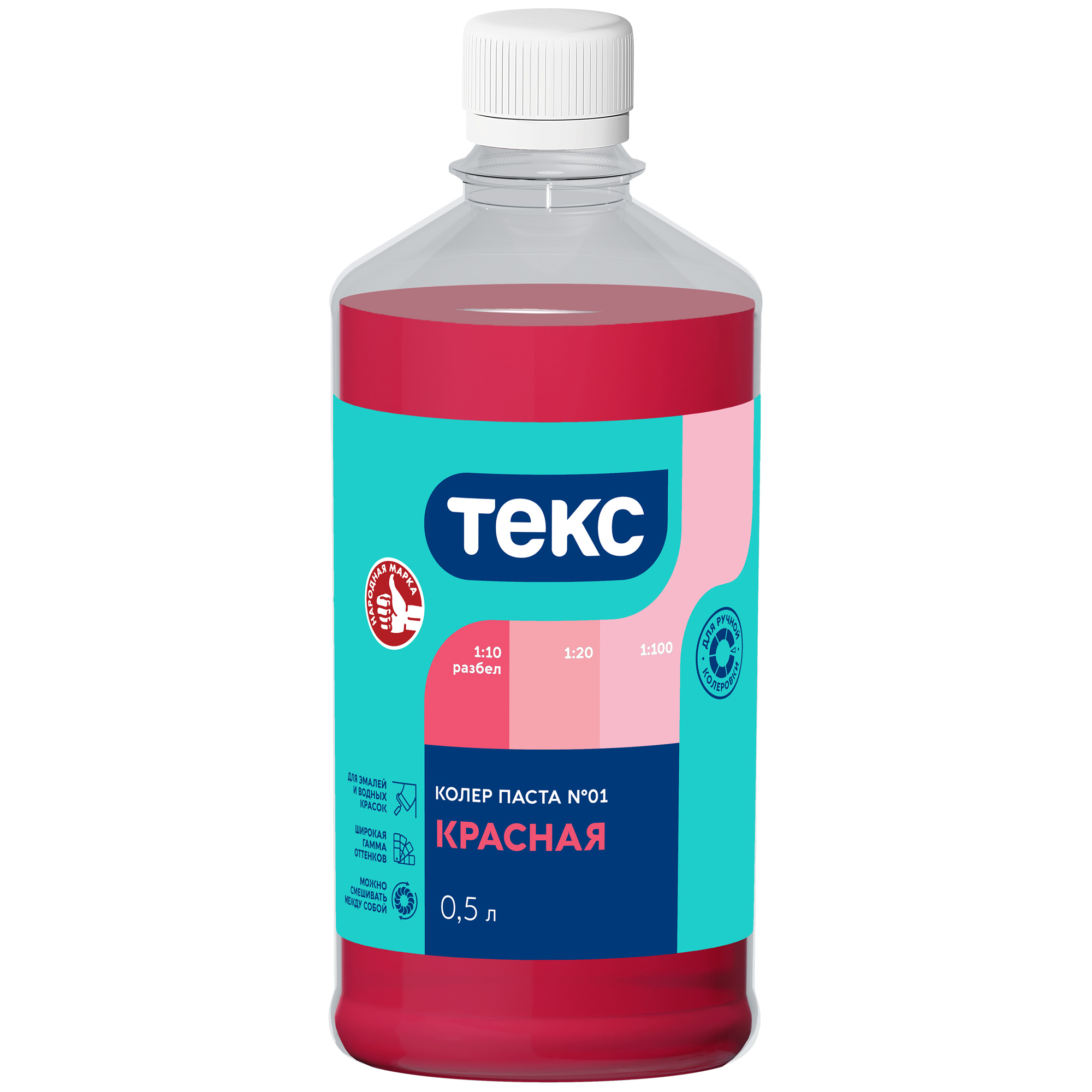Колеровочная паста универсальная для эмалей, масляных и водно-дисперсионных красок. Для колеровки фасадных красок рекомендуется использовать только колер пасты: Кофейная №10, Бежевая №15, Карамель №22, Охра №09 . Не рекомендуется использовать для колеровки известковых и силикатных красок. Колер паста не используется в чистом виде. Универсальный красный колер 0,5 л для любых красок и лака, легко смешивается, обеспечивает стойкий яркий цвет, для внутренних и наружных работ.