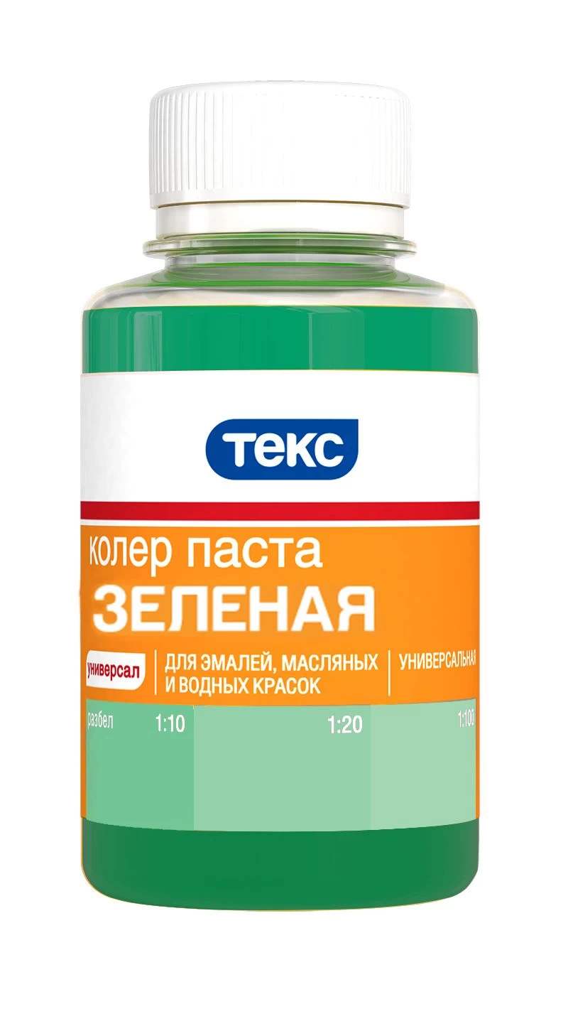 Универсальный зеленый колер для колорирования водных и акриловых красок, легко смешивается, не выцветает, подходит для внутренних и наружных работ.