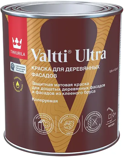 Защитная матовая краска для дощатых деревянных фасадов и фасадов из клееного бруса. Применяется для окраски дощатых наружных стен (включая деревянные панели, блок-хаус, планкен, вагонку) и фасадов из клееного бруса, обшивочных досок, заборов, беседок, навесов и других подобных поверхностей.