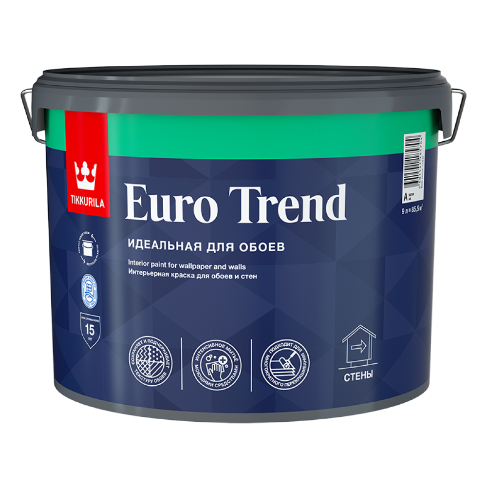 для окраски всех типов обоев, готовых и под окраску. А также для бетонных, оштукатуренных, кирпичных, деревянных поверхностей и гипсокартона внутри помещений с нормальной и повышенной влажностью, в том числе с высокой эксплуатационной нагрузкой (холлов, коридоров и т.д.) Матовый. Расход 10–12 м²/л по ровной невпитывающей поверхности; 7–9 м²/л по неровной впитывающей поверхности. Время высыхания: следующий слой можно наносить через 2 часа.